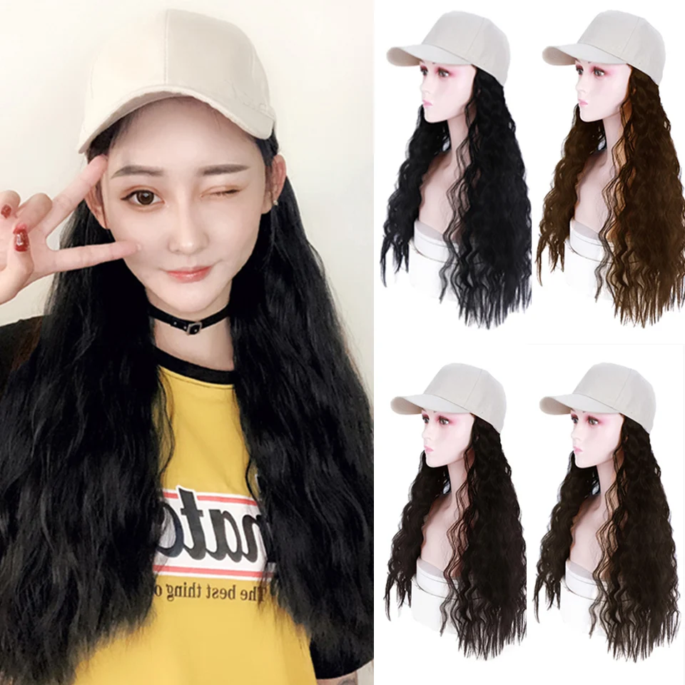 Baseball Cap with Water Hair Extensions girls white cap