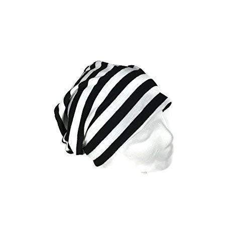 CUSTOM SIZES Striped Knit Slouchy Hat black and white striped hat