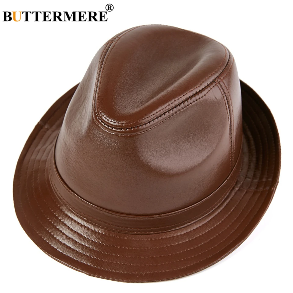Real Leather Jazz Hat Men Autumn Winter brown hat men