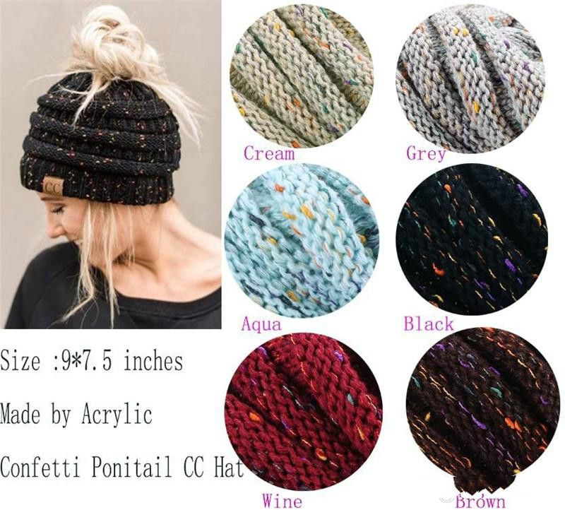 CC Ponytail Knit Hat Fashion Girl ladies cream winter hats