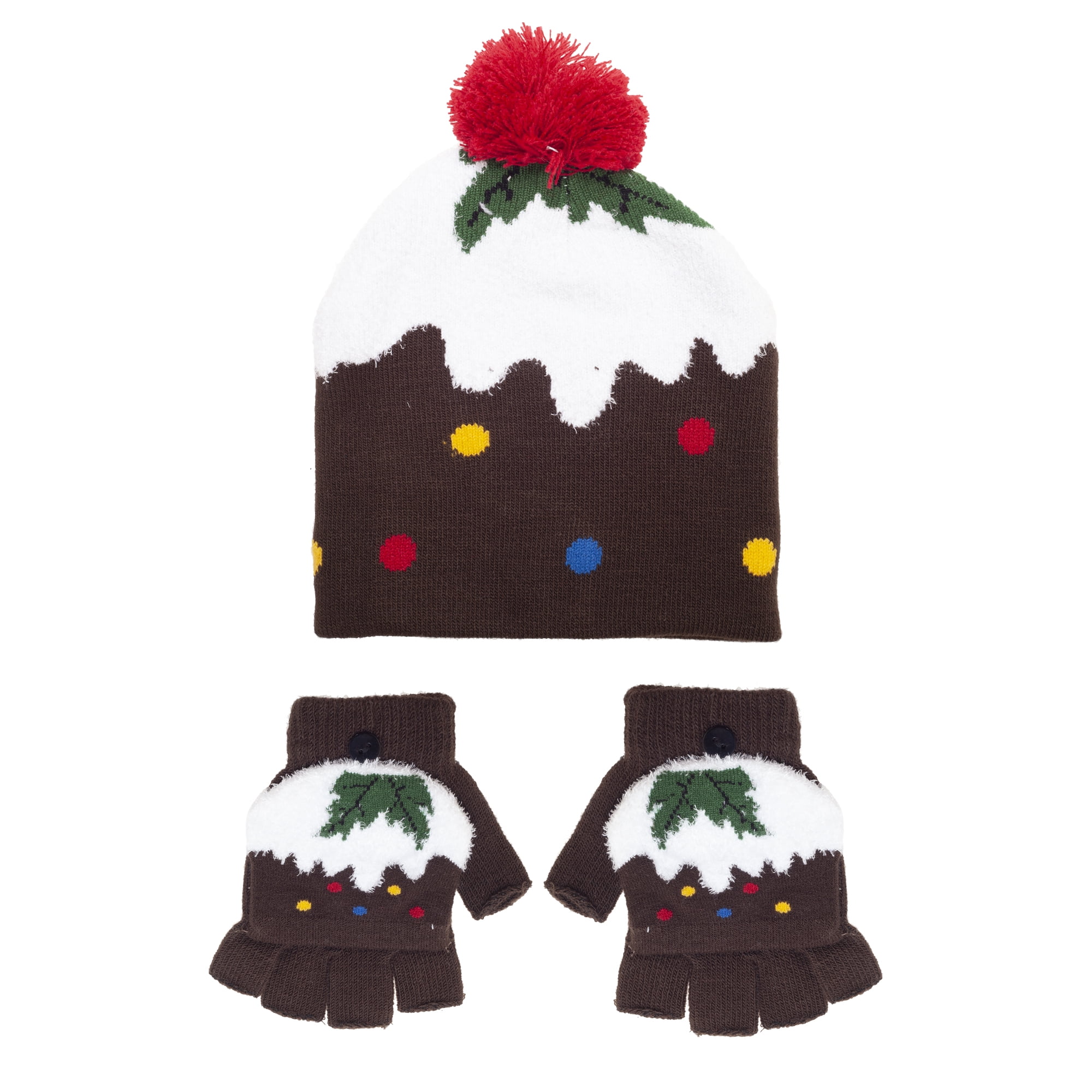 Childrens/Kids Christmas Bobble Hat bobble hat and gloves set