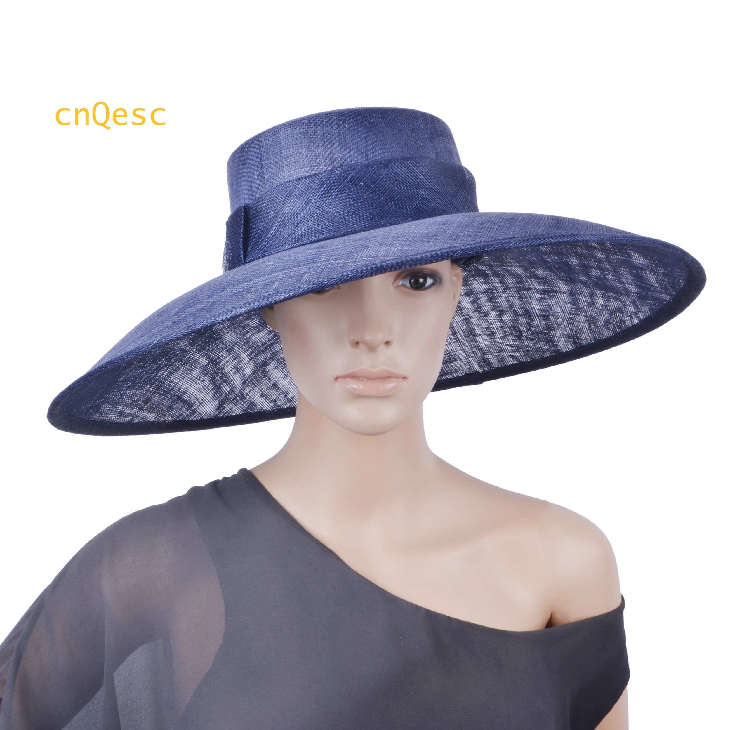 Extra large Navy blue sinamay hat navy ascot hat