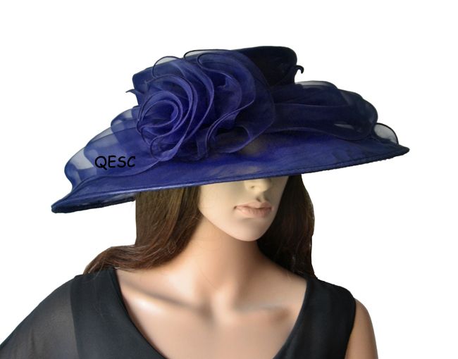 Tea Party Wedding Wide Brim Sinamay navy blue derby hat