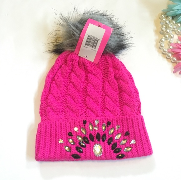 Hot Pink Bling Winter Hat betsey johnson winter hats