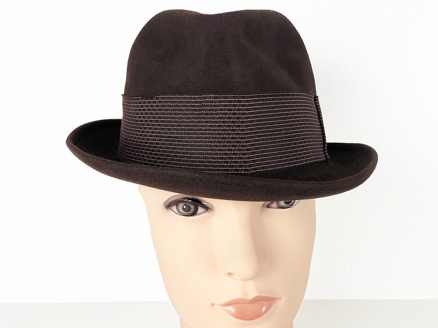 50s Dark Brown Fedora Wide Band Hat by dark brown fedora hat