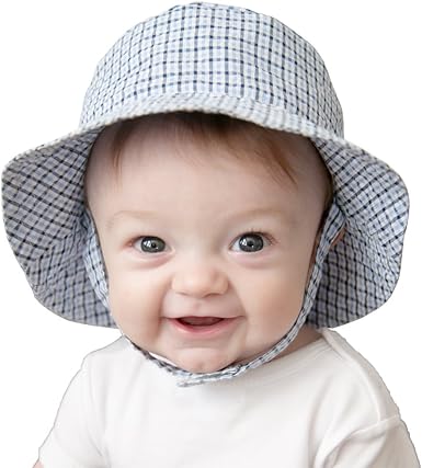 Huggalugs Boys Blue Plaid Seersucker seersucker baby sun hat