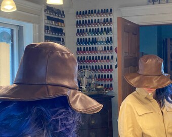brown leather floppy hat