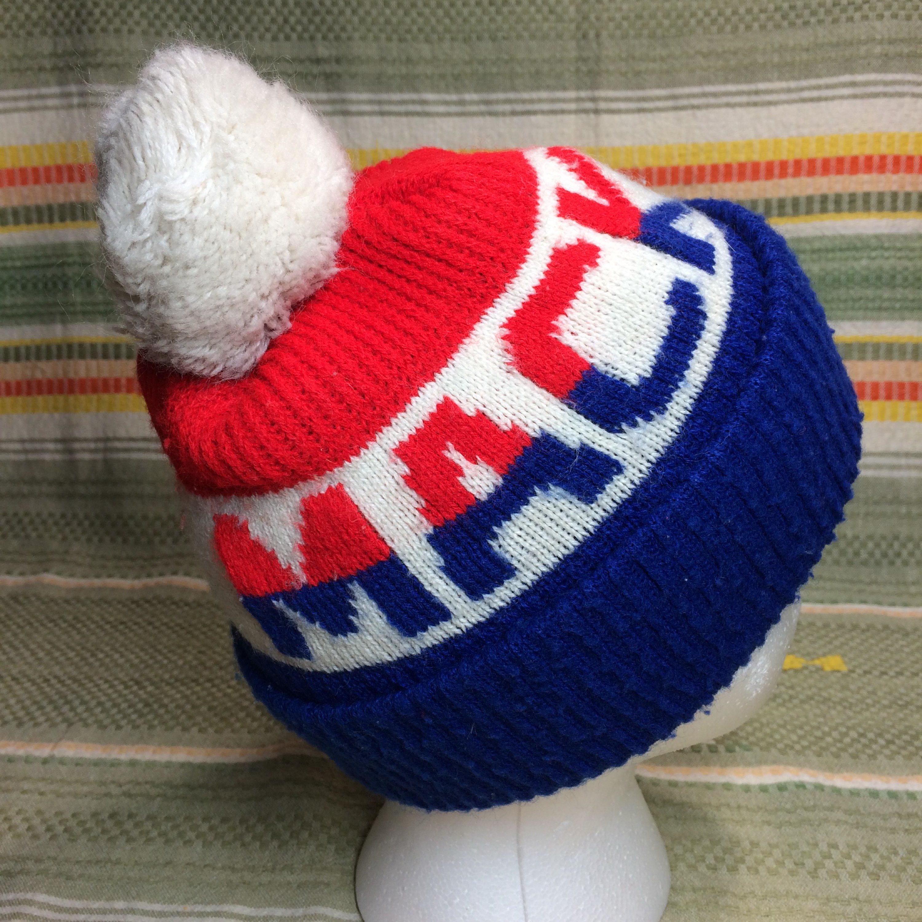 1970's Mack Truck red white blue red and white striped stocking hat