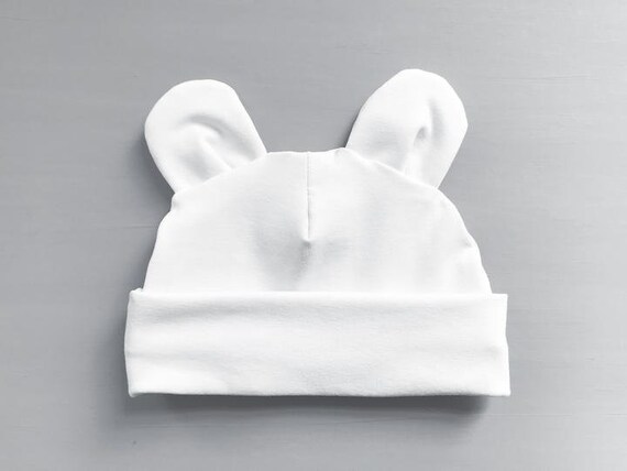 Plain white handmade cute bear ear hat plain white baby hats