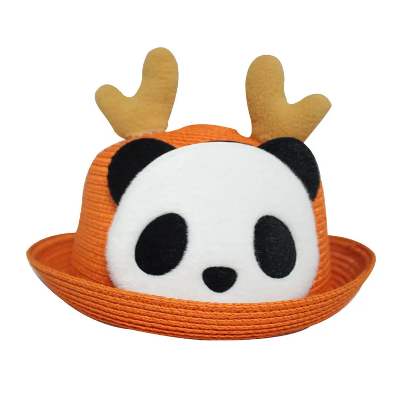 Kids hat panda pattern soft comfortable childrens straw hats cheap