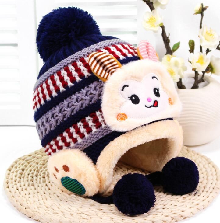Winter Knitted Beanie Ski Hat Faux Fur baby ski hat