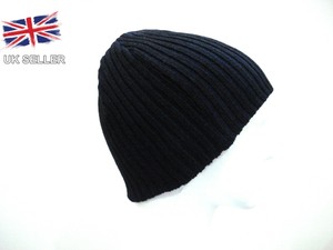 KNITTED BEANIE HAT SKI NAVY BLACK mens winter hats uk