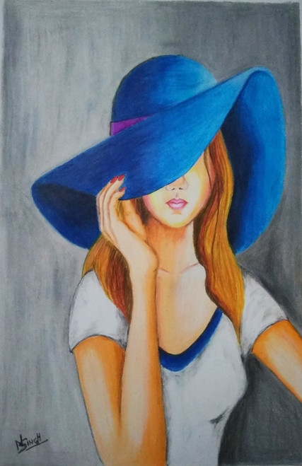 Buy Girl in blue hat Handmade Painting hat girl images