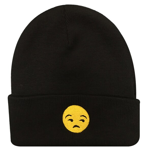 Annoyed Face Embroidered Black Beanie neck cap