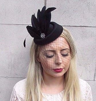 Black Veil Feather Pillbox Hat funeral hat