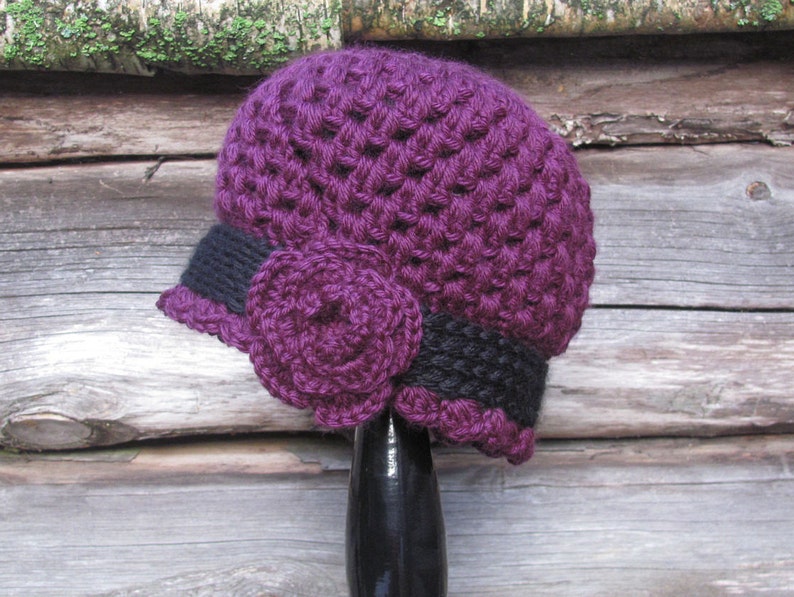 Crochet Hat Purple Crochet Cloche Hat crochet cloche hat with flower