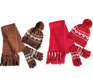 Winter Beanie Hat Gloves Scarf Set girls red hat and gloves