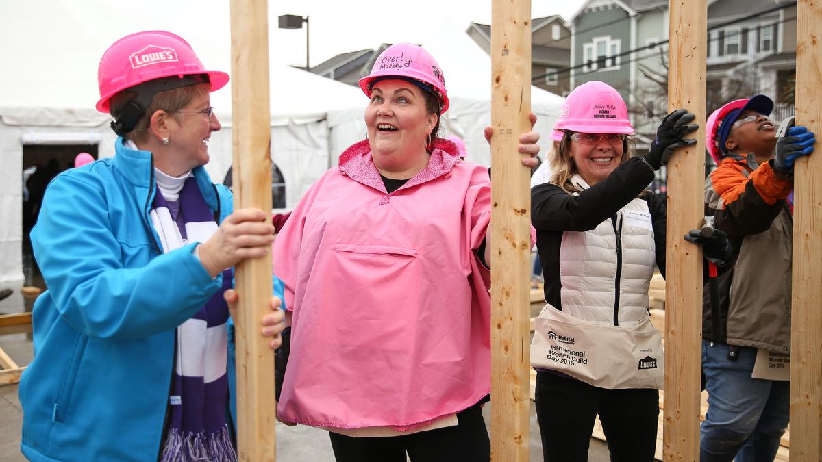 Women Build event pink hard hat lowes
