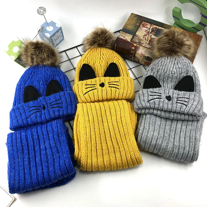 caps hats with baby scarf knitted baby kids cat hat