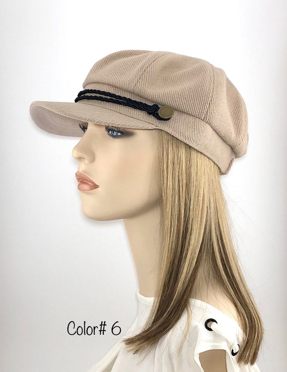 Chemo hat. Women's Tan Corduroy Newsboy chemo caps with hair