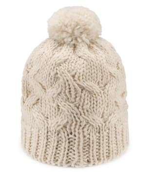 Cable Knit Bobble Hat (Older Girls) | M\u0026S m&s bobble hat