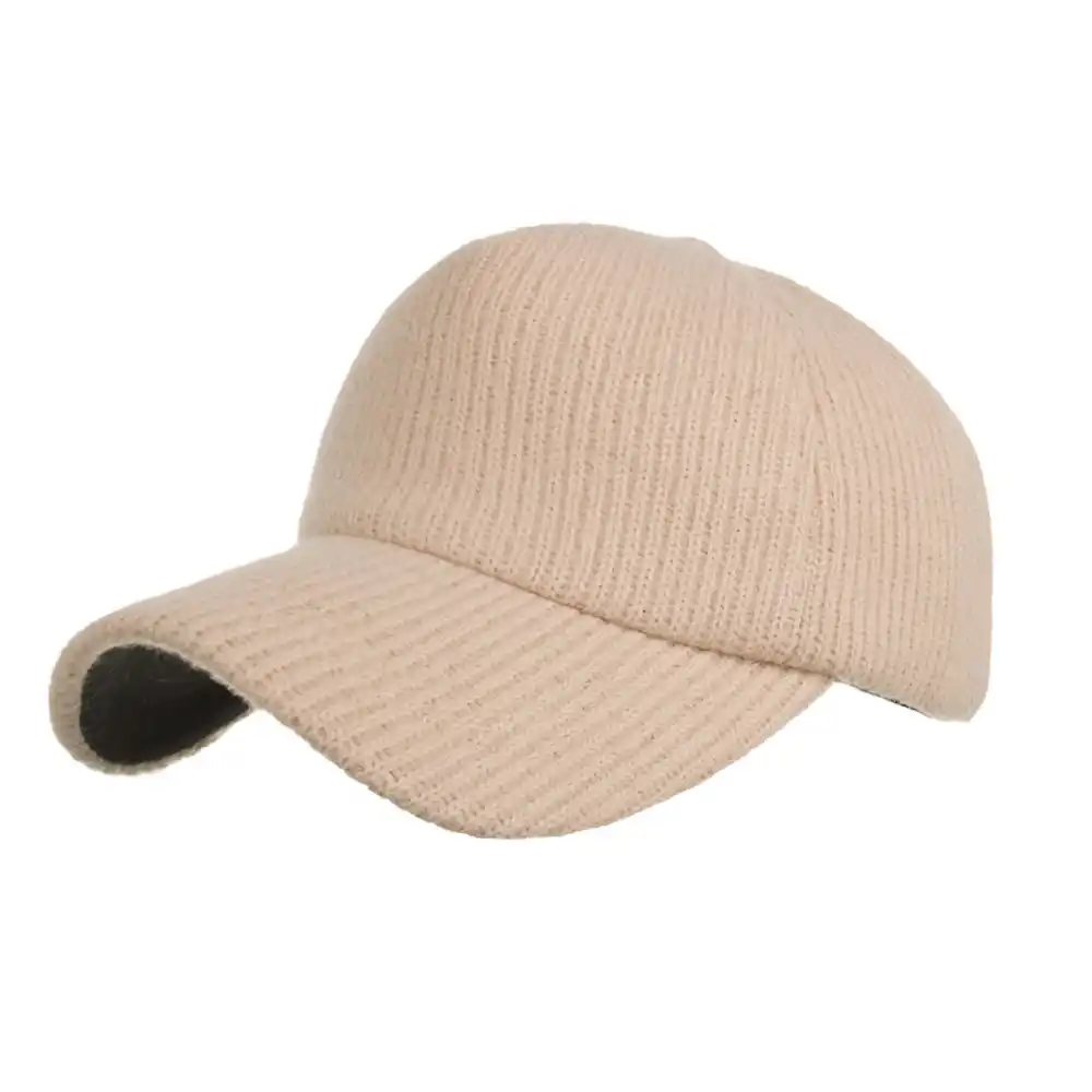 Plain Rib Knitted Winter Baseball Hat plain beige hat