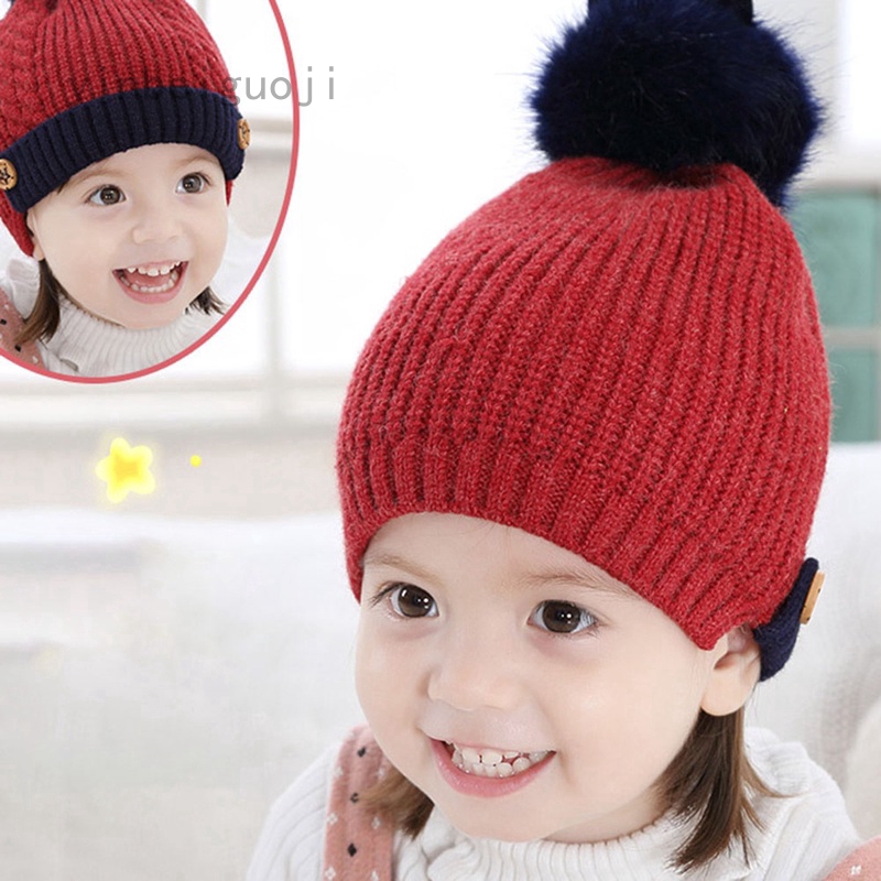 Baby knit hat Pom pom hat knit winter baby boy wool hat