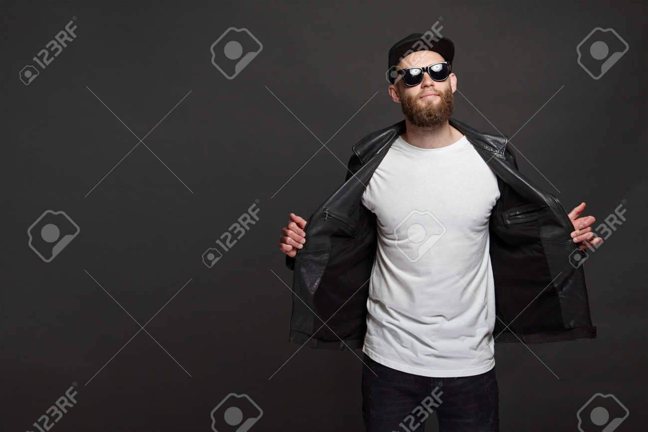 Beard Wearing White Blank T-shirt baseball cap photography