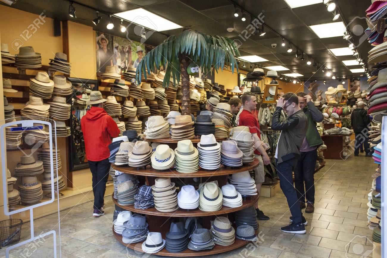 APR 16, 2016: Interior Of A Hat Shop hat shop usa
