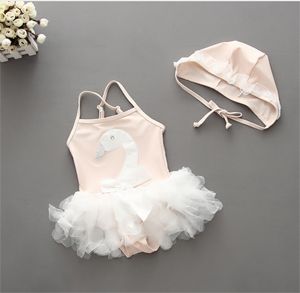 Swimwear+Hat Swan Swimsuit Baby Girl baby swimwear hat