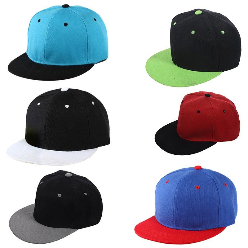 Baseball Adjustable Snapback Hat plain black flat peak cap