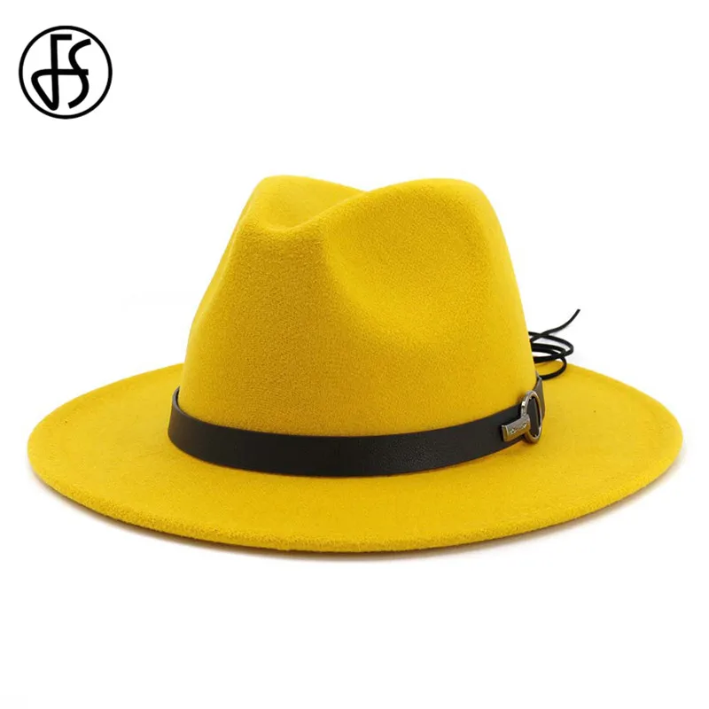 FS Men Wide Brim Wool Felt Fedora Hats yellow trilby hat